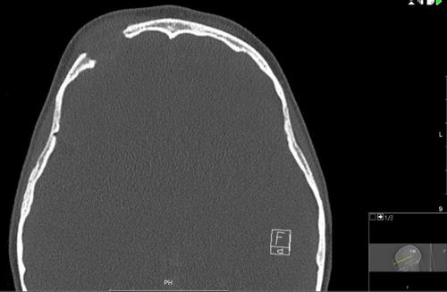 Following these investigations and further discussion with the neurosurgical and paediatric teams, the revised diagnosis was Langerhans cell histiocytosis (LCH). As part of the initial work-up of this new diagnosis, a skeletal survey was done with a full-body x-ray, which showed only a solitary bony lesion in the right supraorbital region.