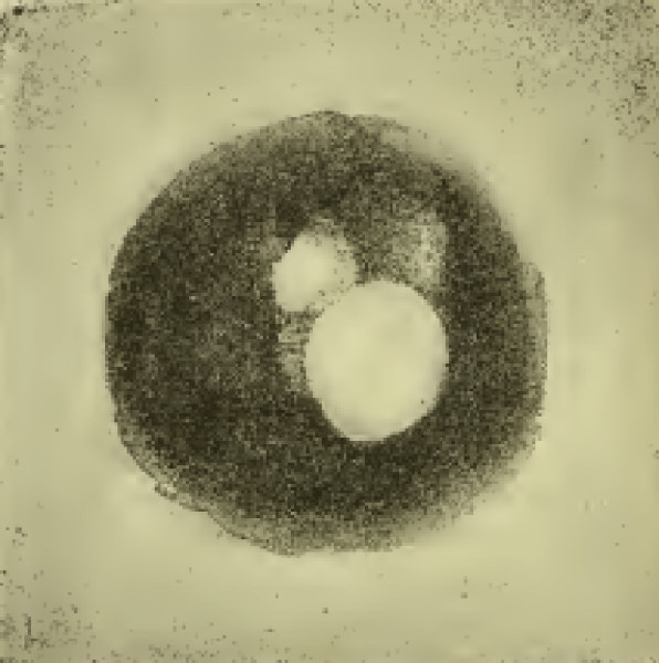 Fig 4. Retinal image: the smaller white area is the optic disc and the larger white circle the reflection from the cornea. Source: The Philadelphia Photographer Journal.