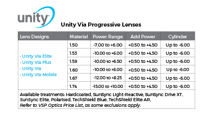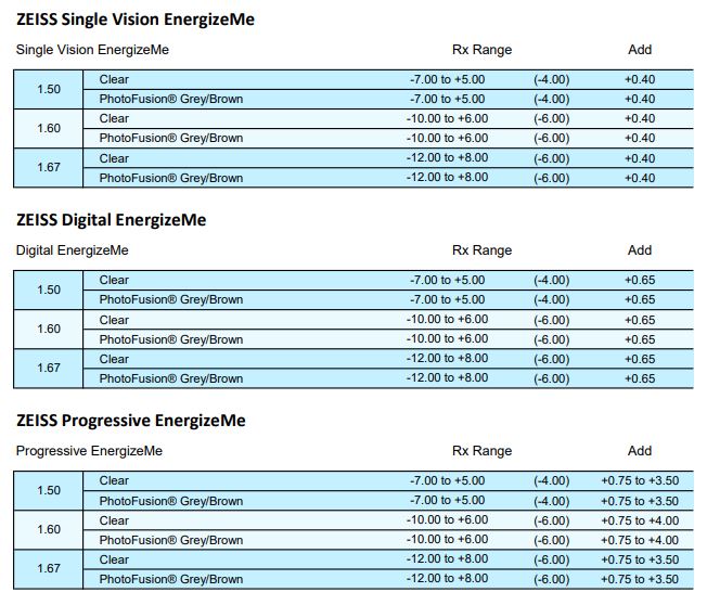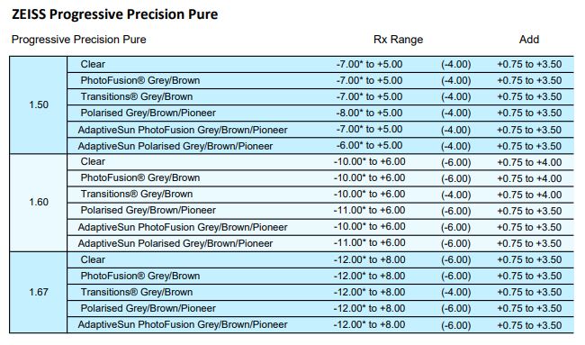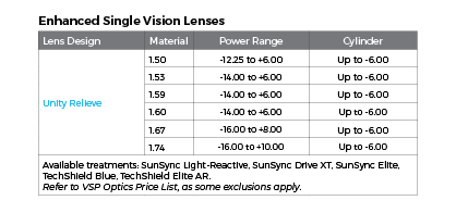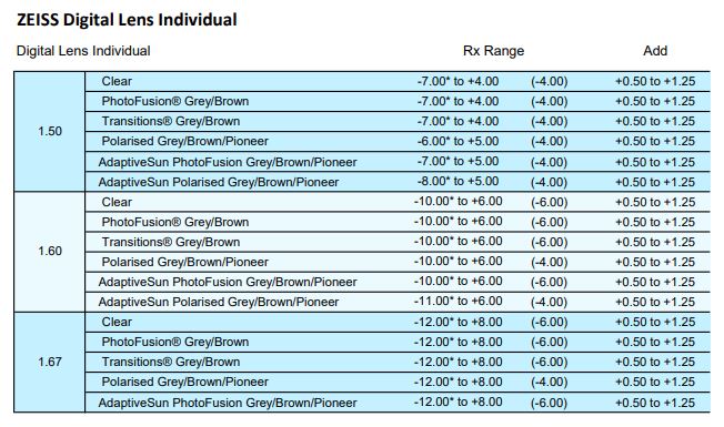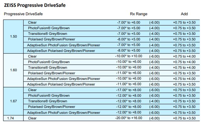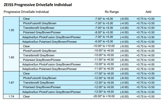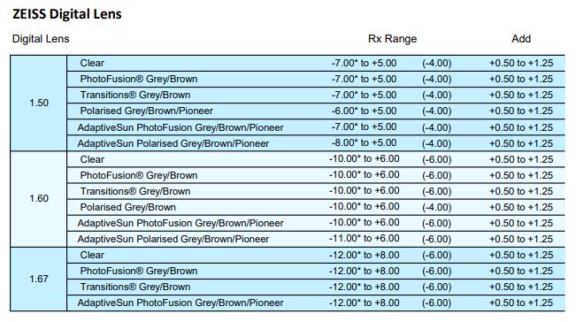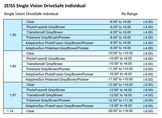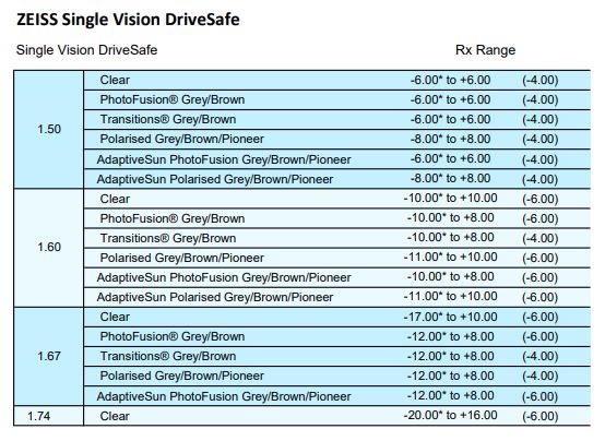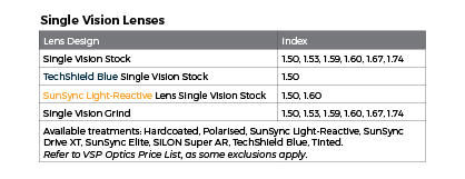 • Clear 1.50, 1.53 Trilogy, 1.59 Poly, 1.67
