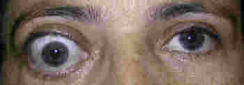 The most frequent sign is upper eyelid retraction, seen in 90% of cases (see Fig 1). Other common signs include proptosis, soft tissue swelling and eyelid/conjunctival redness. Chemosis and caruncle oedema may be observed. The signs may be bilateral or unilateral.