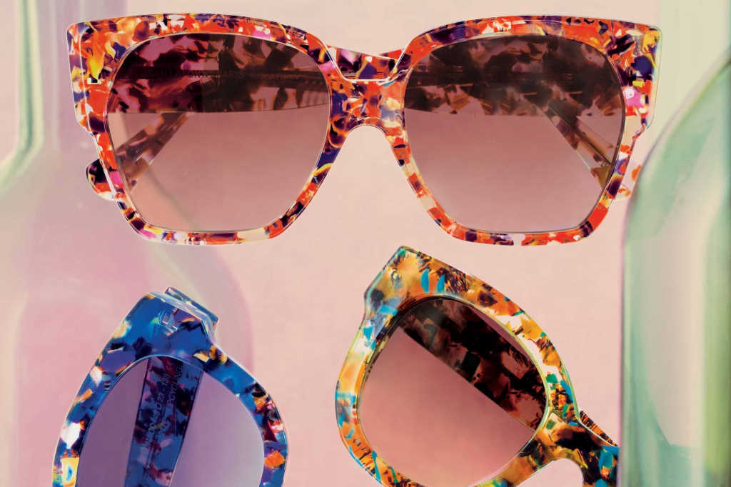 Using a thermo-fusion process mixing 50% vintage colours recycled from previous collections with 50% new biomaterial, Lafont creates new acetate colours in its facility in France. The latest sun collection offers three new sunglass designs Monaco, Ouessant and Ocean, all available in upcycled colourways.