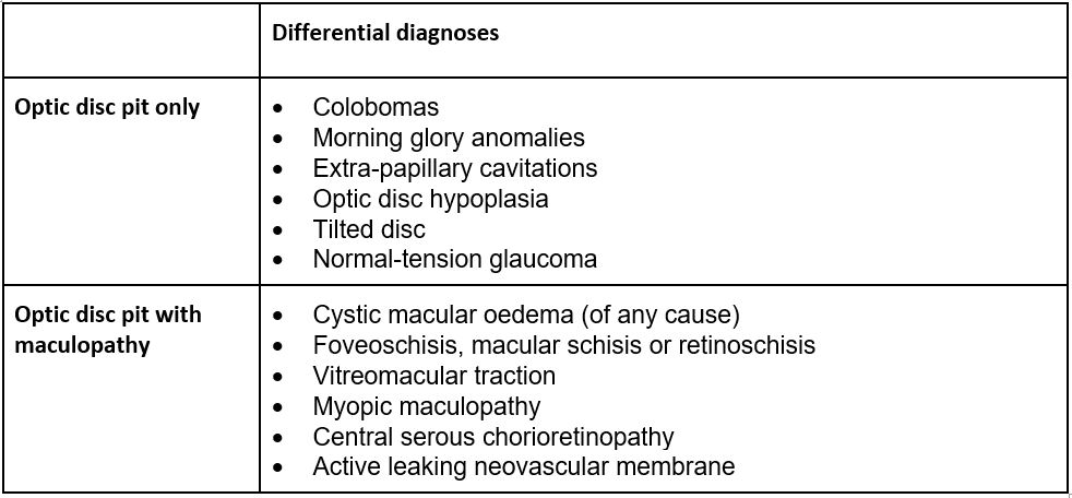 Table 1. Differential diagnoses: signs of optic disc pit overlap with several more common diseases