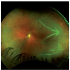 Retinal detachment is reported in 2% of cases at initial diagnosis and 47–70% will eventually develop a retinal detachment according to a meta-analysis (Fig 5)6,10.