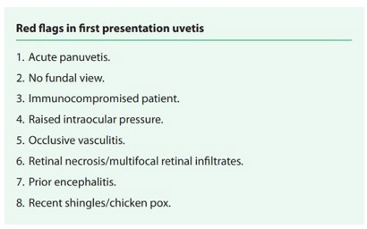Onset of symptoms is acute or subacute, most commonly including redness, pain or photophobia, blur and new-onset floaters. Between 70 and 90% of cases are unilateral at initial presentation, but second eye involvement can occur in up to 30% without treatment2.