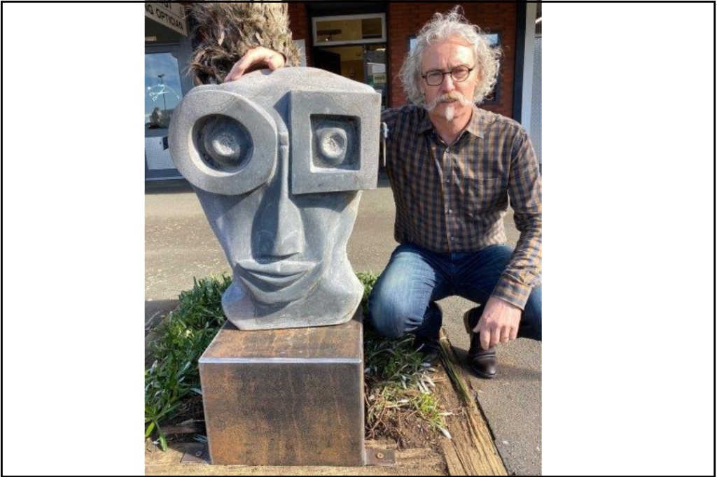 Inspired by the local stone carving symposium, Warner started sculpting five years ago and decided to create something to celebrate the business milestone. The sculpture – named Lex after the Roman numerals LX, for 60 – now takes pride of place outside the practice front. Carved from a local andesite boulder, Warner used angle grinders, diamond blades, chisels and diamond polishing pads to create the piece.