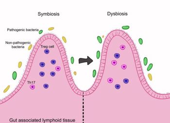 Fig 2. The gut microbiome maintains the balance between Th17 and Treg cells. Dysbiosis disrupts this balance, promoting inflammation.Credit: Samalia et al1