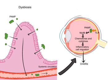 Gut dysbiosis may contribute to uveitis by being a source of antigens and antigen-specific T cells through1: