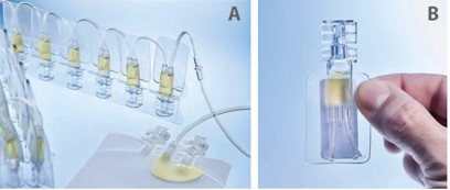 Fig 1. (A) The design of the serum eye drop vial allows for simultaneous sterile filling of multiple vials then