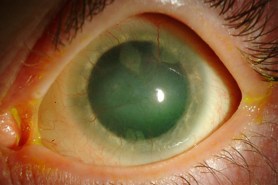 The loss of the mucous-producing goblet cells results in long-term severe dry eye disease. Loss of limbal stem cells, essential for corneal healing, results in corneal neovascularisation, scarring and reduced vision. In children this can precipitate amblyopia. Limbal stem cell transplantation is usually hampered by the fact that there is insufficient limbal stem cell tissue in the fellow eye as it too is often severely affected.
